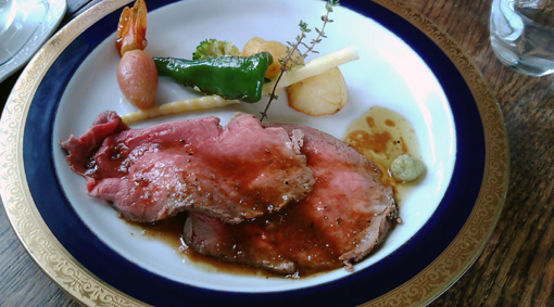 夏限定のコースを頼んだんですが、前菜、サラダ、スープ、メイン(ローストビーフだった)、パン(3個付いてた!)、コーヒー&デザートという組み立て。