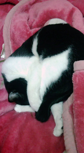 今日の小鉄さん。顔かくして寝てる。まぶしい?
